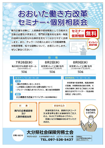 参加希望の方は、大分県社会保険労務士会 申込フォームよりお申し込みください。